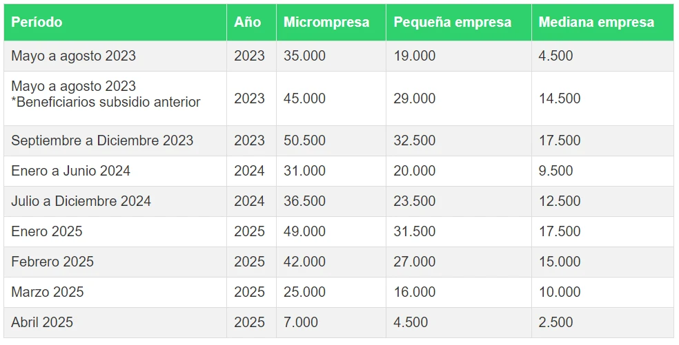 Los siguientes son los montos del beneficio hasta abril del 2025 (Fuente: SII)