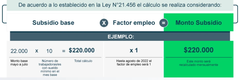 El factor de empleo, en los primeros 3 meses será de 1, luego de este periodo mensualmente se calculará dividiendo: N° trabajadoras/es totales de la empresa en el último mes informado por AFC / N° trabajadoras/es totales en el mes base